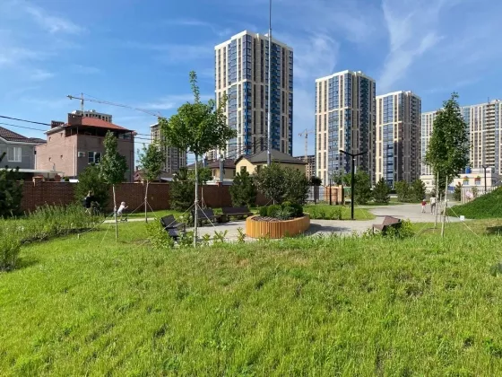 Возле дома 2 школы, 3 садика и поликлиника,торговы центр, Так же есть фитнес центр с открытым бассейном , очень зелёный и тихий район города .