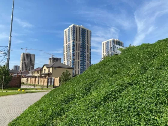 Вдоль дома огромная алея 1,5 километра и фонтаны