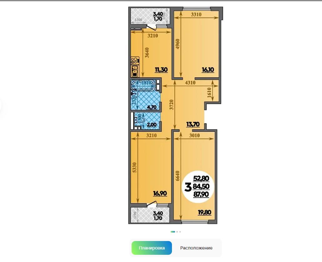 Продается 3-х комн. новостройка, 88 кв.м., 8/16 эт
