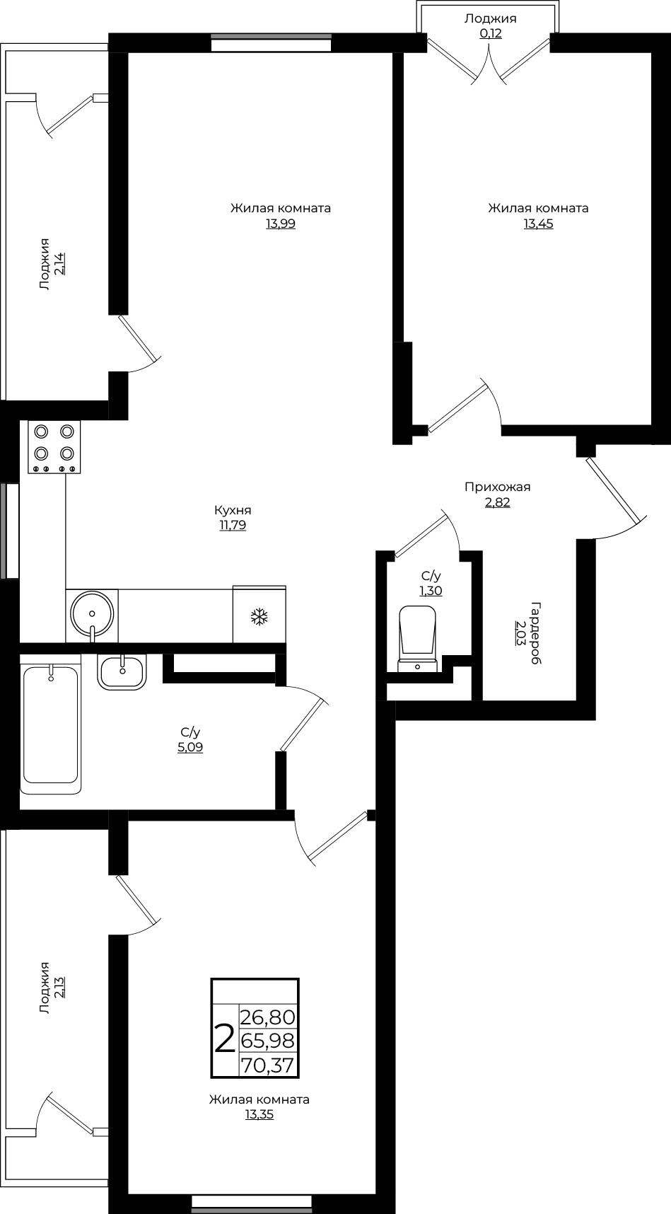 Продается 3-х комн. новостройка, 71 кв.м., 7/9 эт