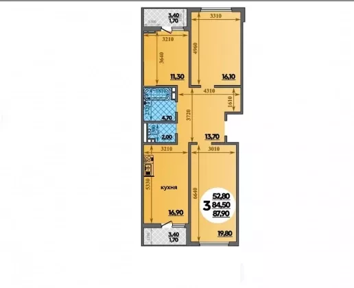 Продается 2-х комн. новостройка, 91 кв.м., 8/16 эт
