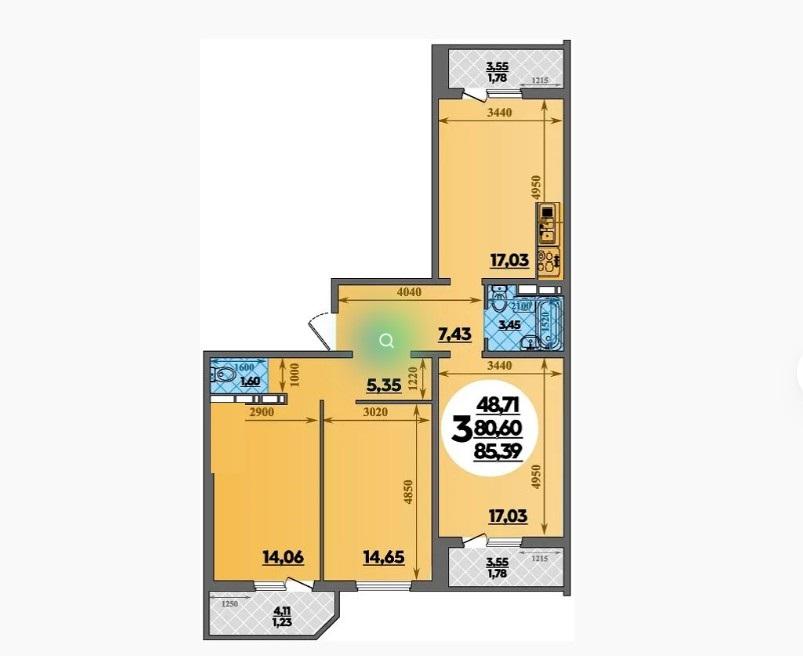 Продается 3-х комн. новостройка, 87 кв.м., 7/16 эт