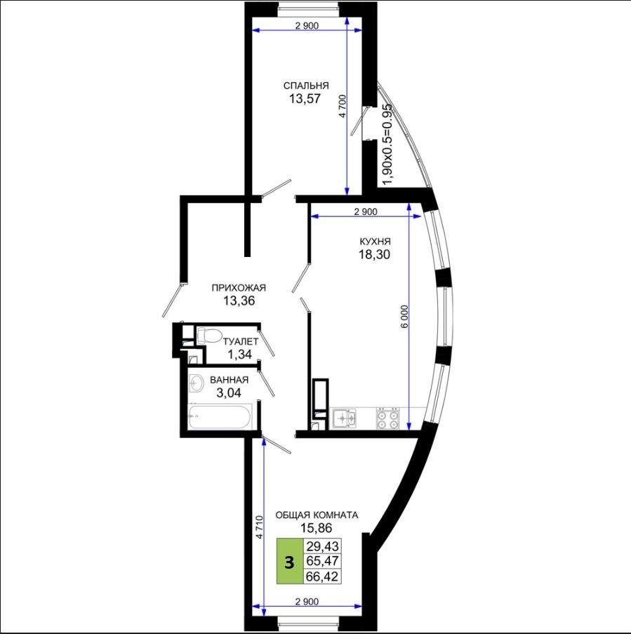 | Площадь, кв.м. | 66 |