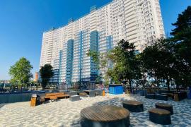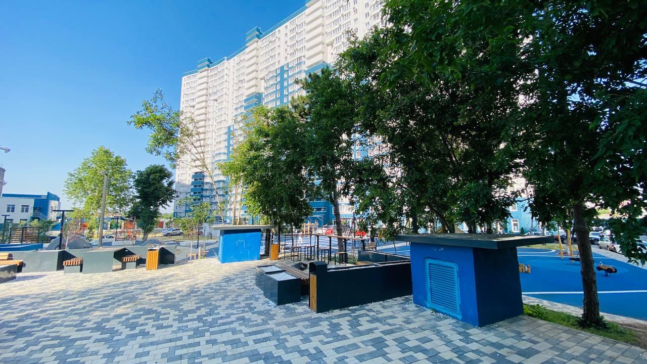 - ЖК расположен в Центральном окpугe г. Краснодар на берегу p.Kубaнь.