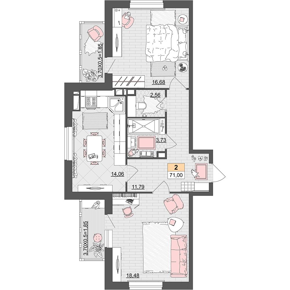 Продается 2-х комн. новостройка, 67 кв.м., 5/18 эт