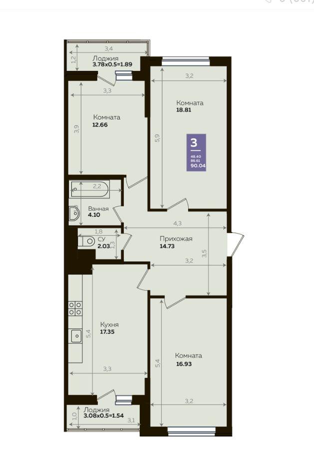 Продается 3-х комн. новостройка, 93 кв.м., 5/24 эт