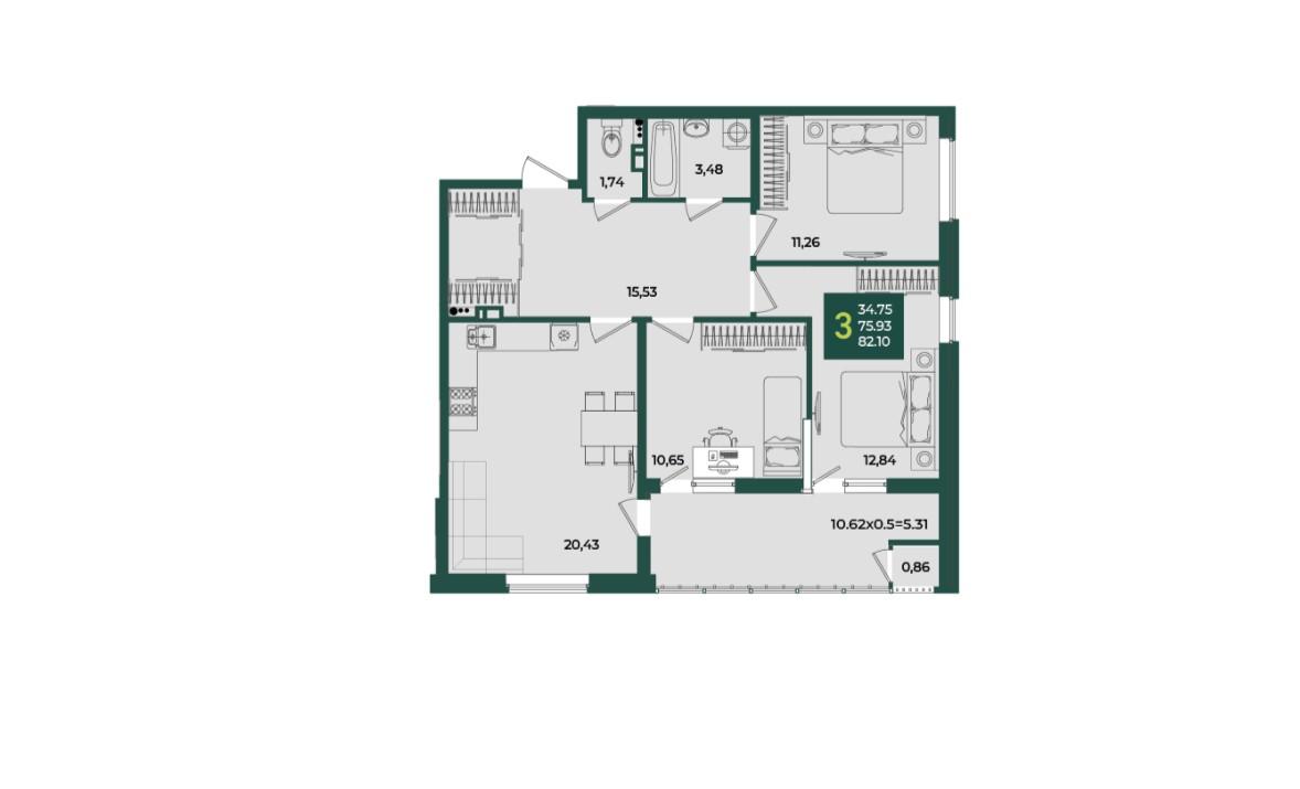 Продается 2-х комн. новостройка, 86 кв.м., 7/18 эт
