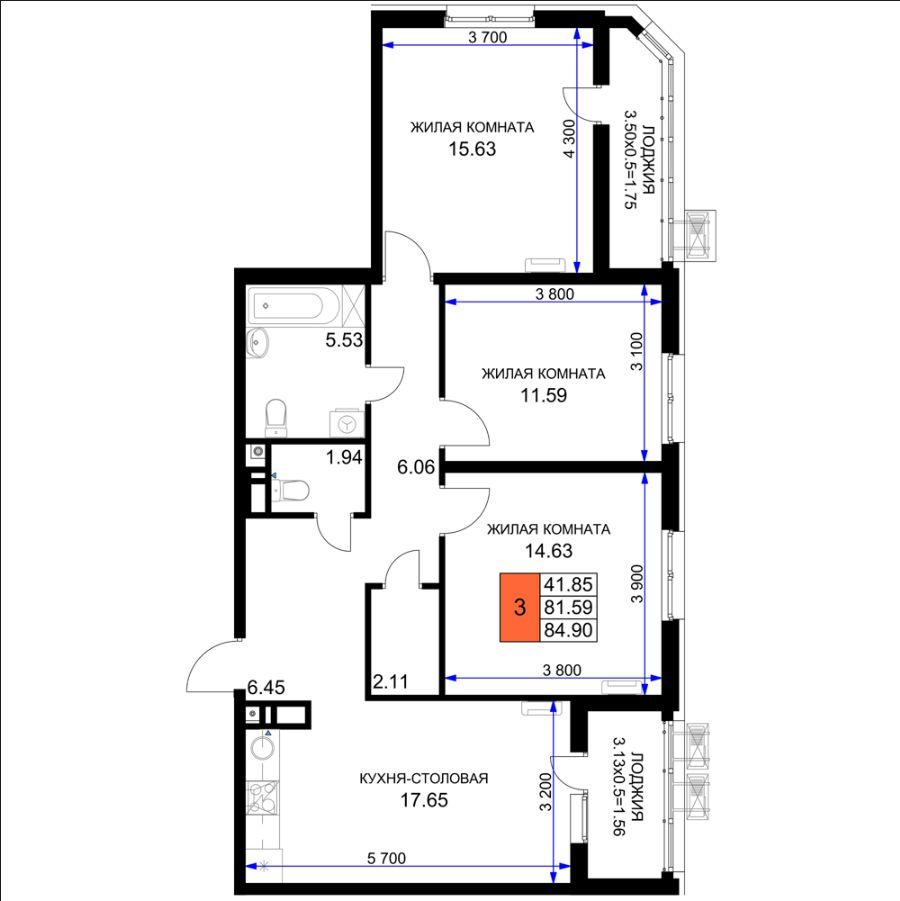 | Комнат в квартире | 3 |