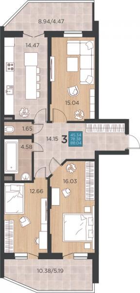 Продается 3-х комн. новостройка, 100 кв.м., 13/16 эт