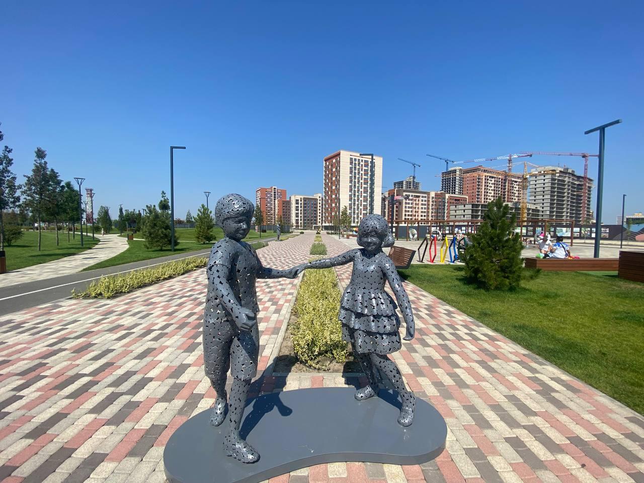 колясочная зона и помывочная для лап собачек .так же есть площадки для собак. продуманный ландшафтный красочные детские площадки и, много зелени и свежего воздуха.