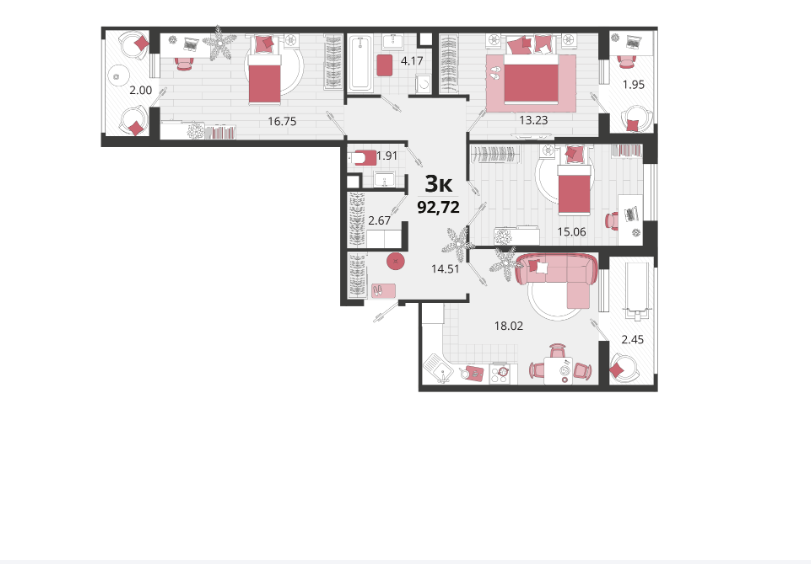 Продается 3-х комн. новостройка, 95 кв.м., 7/9 эт