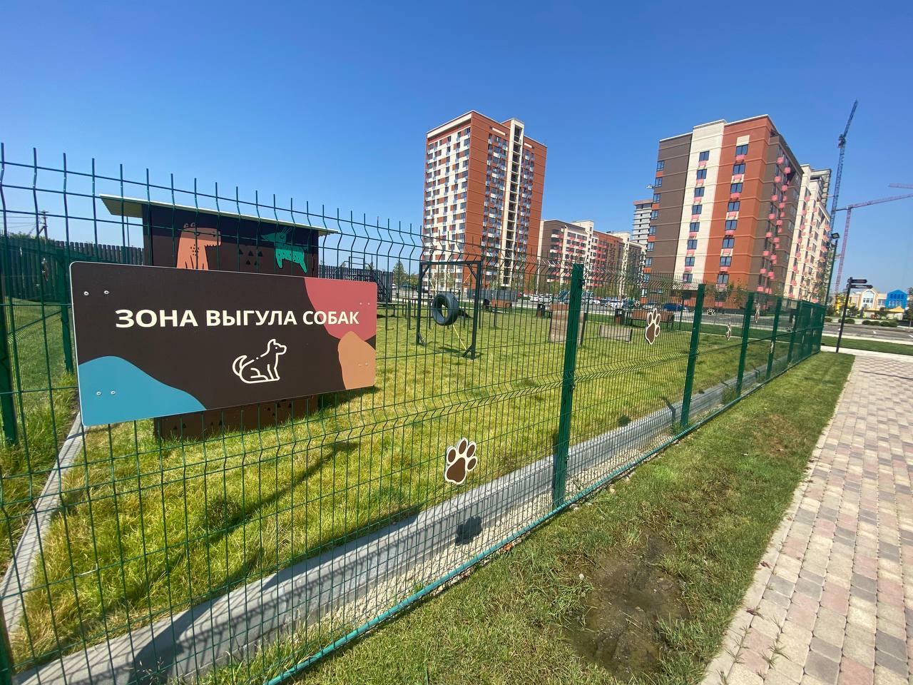 колясочная зона и помывочная для лап собачек .так же есть площадки для собак. продуманный ландшафтный красочные детские площадки и, много зелени и свежего воздуха.