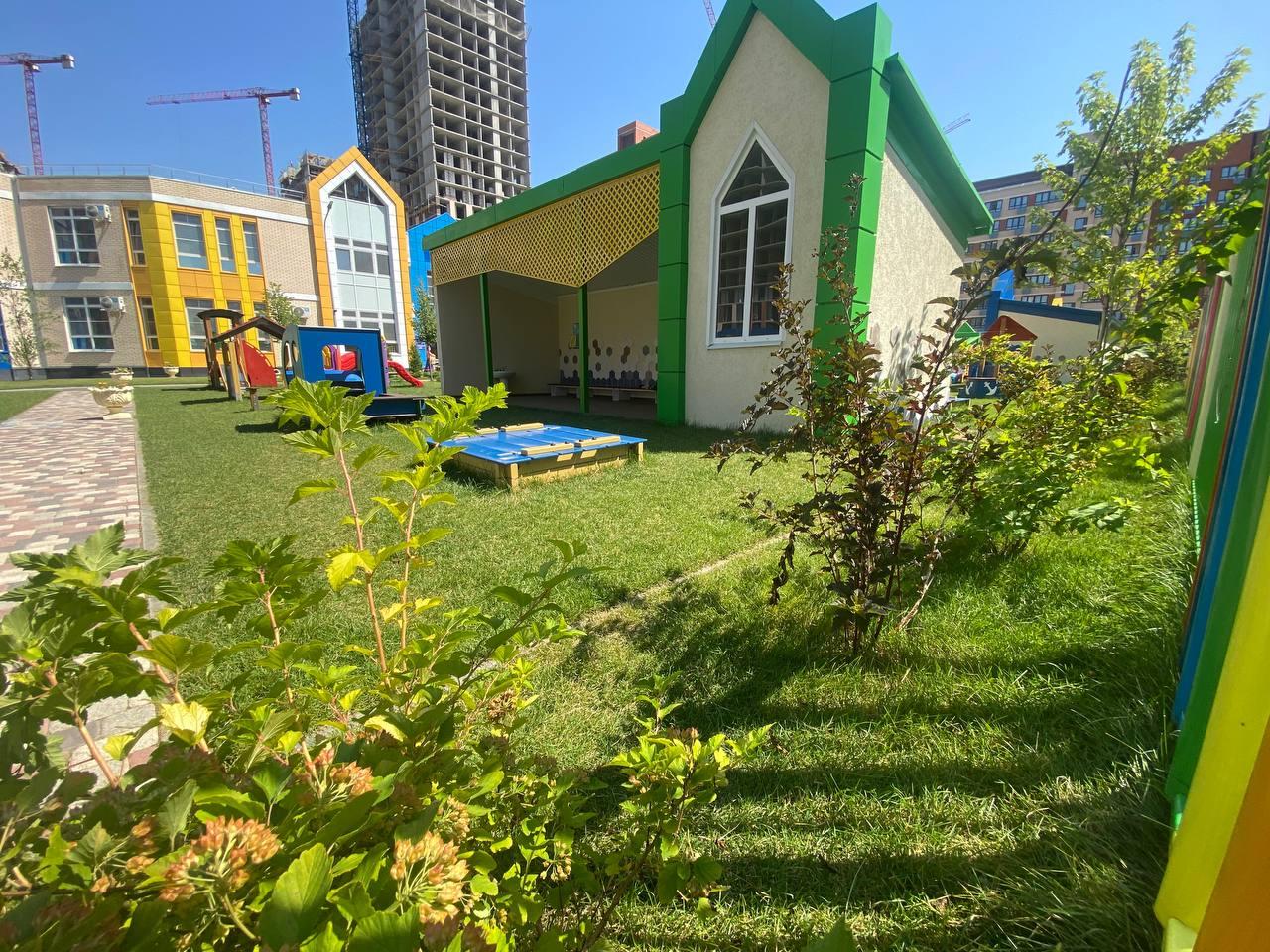 колясочная зона и помывочная для лап собачек .так же есть площадки для собак. продуманный ландшафтный красочные детские площадки и, много зелени и свежего воздуха.