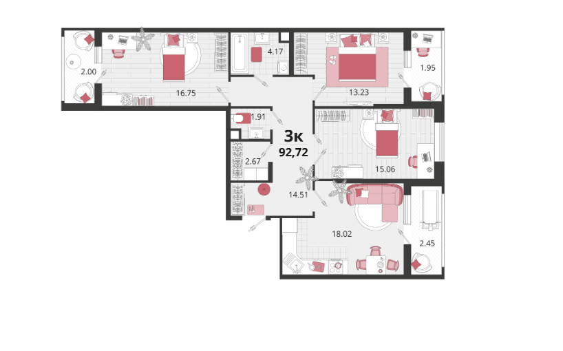 Продается 3-х комн. новостройка, 99 кв.м., 6/10 эт