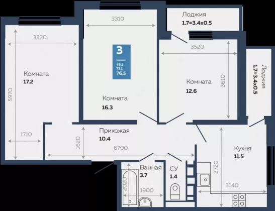 | Комнат в квартире | 3 |