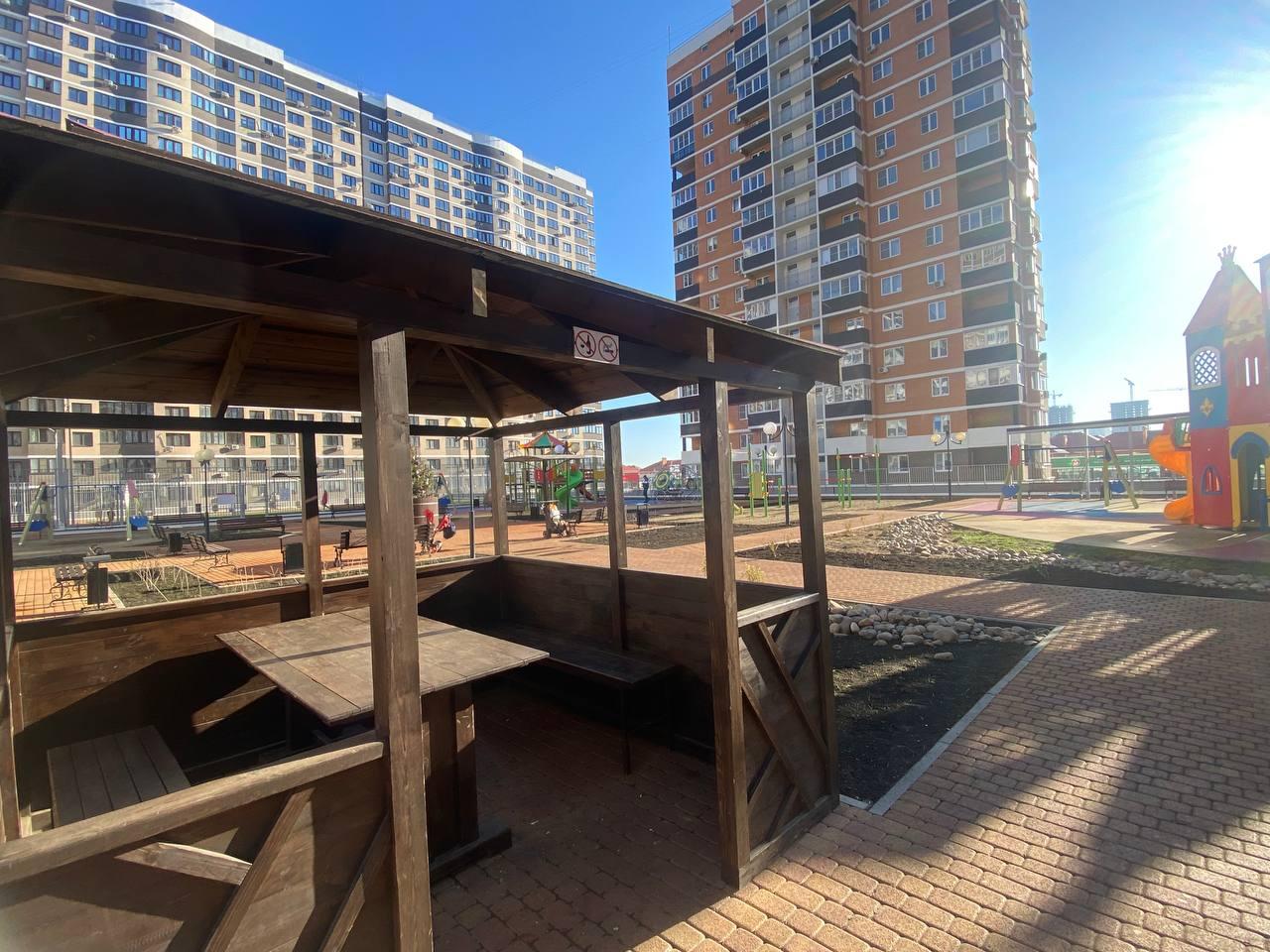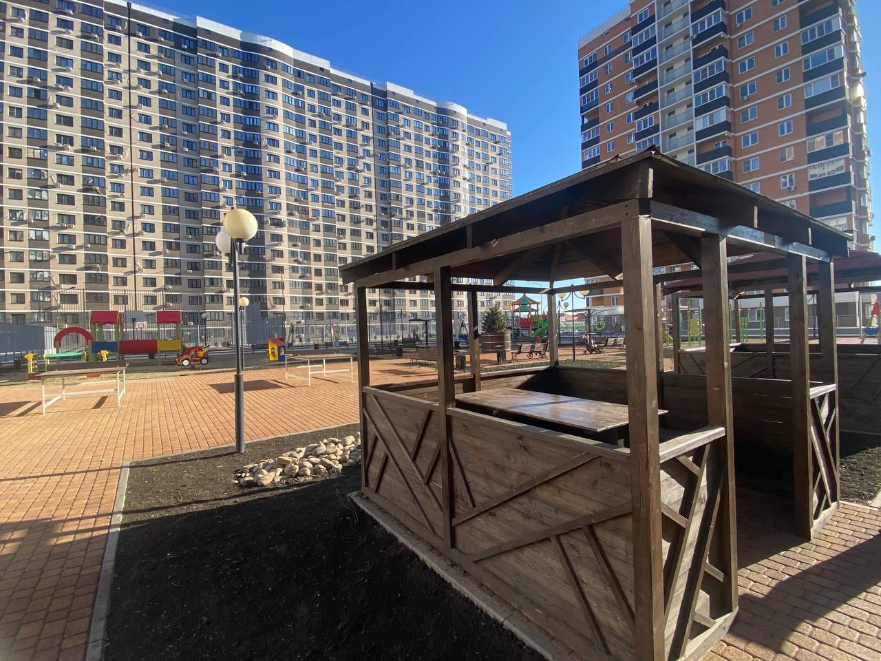 Много детских площадок, огромная аллея по всему району , мангальная зона, так же есть охраняемая парковка.