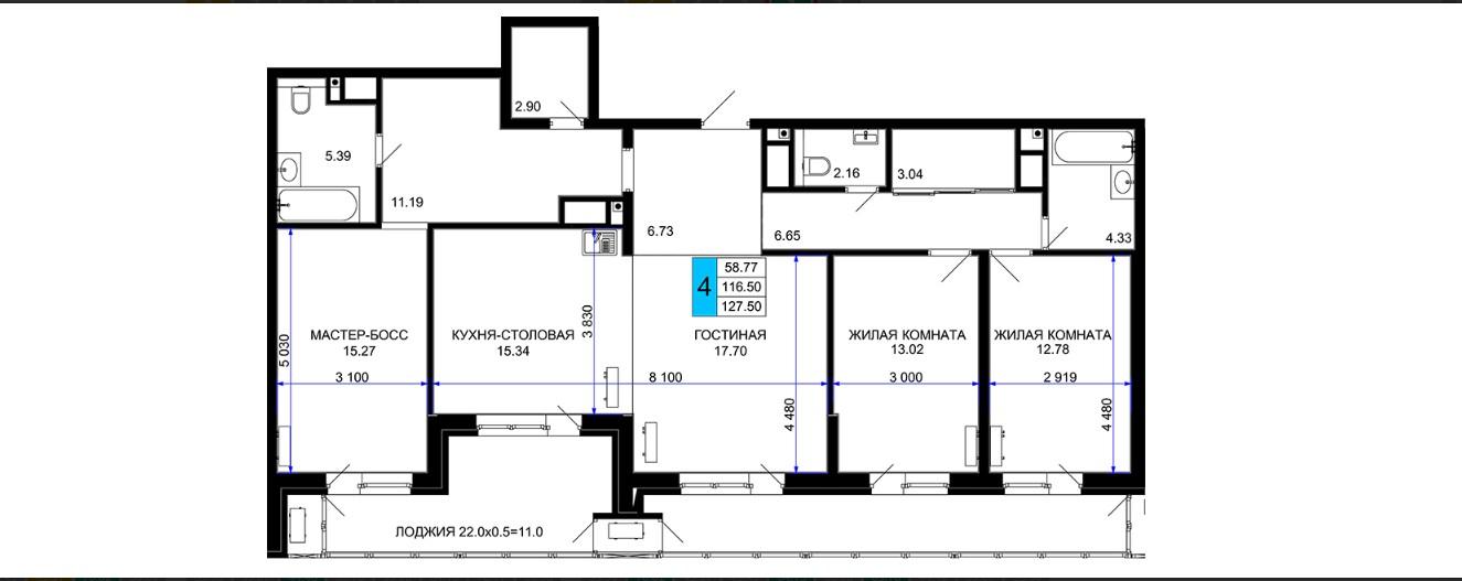 Продается 4-х комн. новостройка, 121 кв.м., 16/16 эт