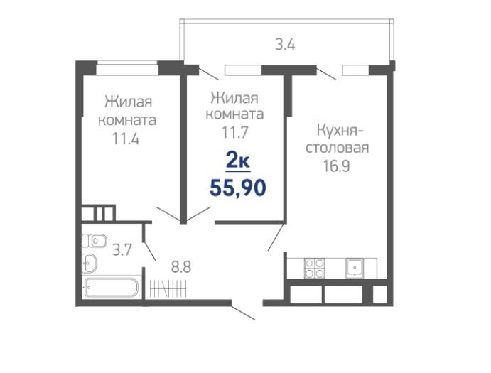 Продается 2-х комн. новостройка, 56 кв.м., 15/24 эт