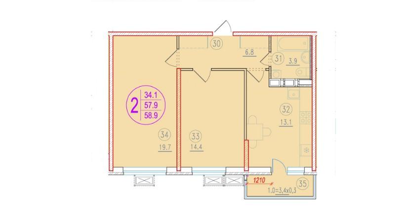 Продается 2-х комн. новостройка, 59 кв.м., 7/17 эт