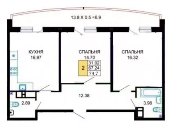 Продается 2-х комн. новостройка, 75 кв.м., 14/24 эт