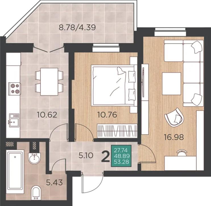 Продается 2-х комн. новостройка, 53 кв.м., 16/17 эт