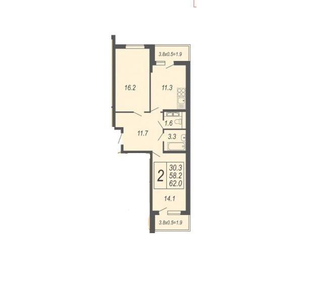 Продается 2-х комн. новостройка, 62 кв.м., 15/19 эт