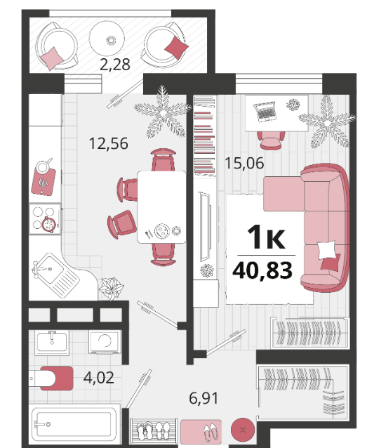 Продается однокомнатная новостройка, 41 кв.м., 6/9 эт