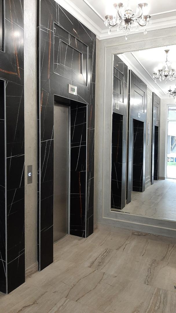 В подъездах бесшумные лифты,дизайнерская отделка,консьерж-служба.