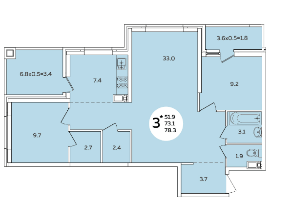 Продается 3-х комн. новостройка, 78 кв.м., 16/24 эт
