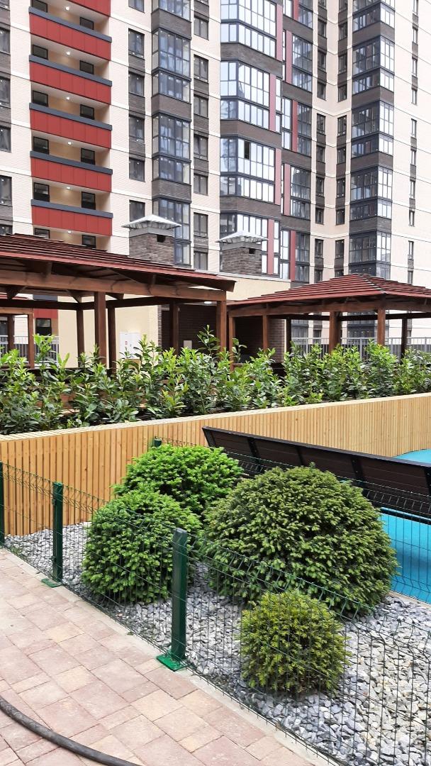 Придомовая территория ландшафтный дизайн,2-х уровневый стилобат,с детскими площадками и зонами отдых,удобный выезд и города.