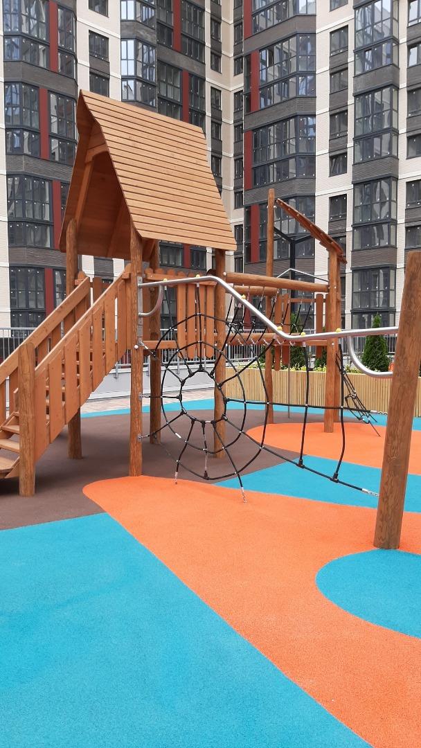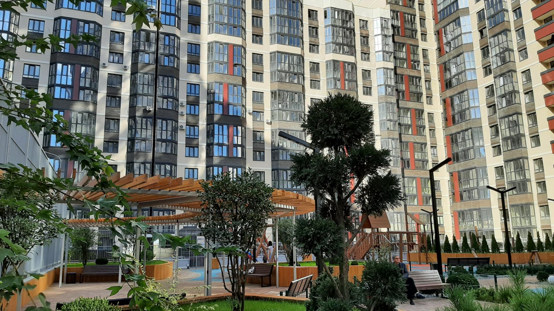 Придомовая территория ландшафтный дизайн,2-х уровневый стилобат,с детскими площадками и зонами отдых,удобный выезд и города.
