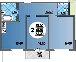 Продается 2-х комн. новостройка, 62 кв.м., 13/18 эт