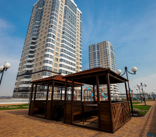 Рядом построена школа,строится детский сад,прогулочные аллеи,построен храм.