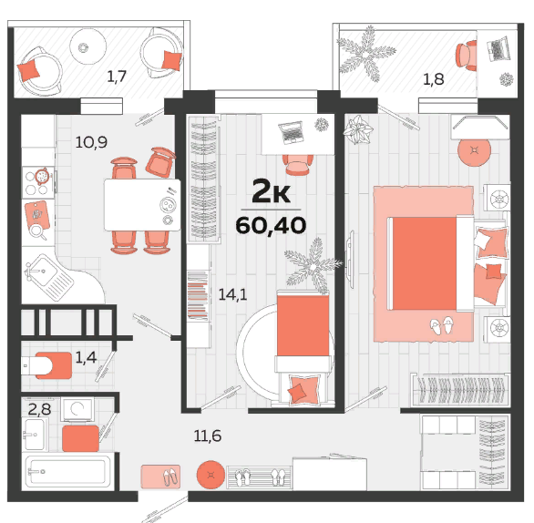 | Комнат в квартире | 2 |