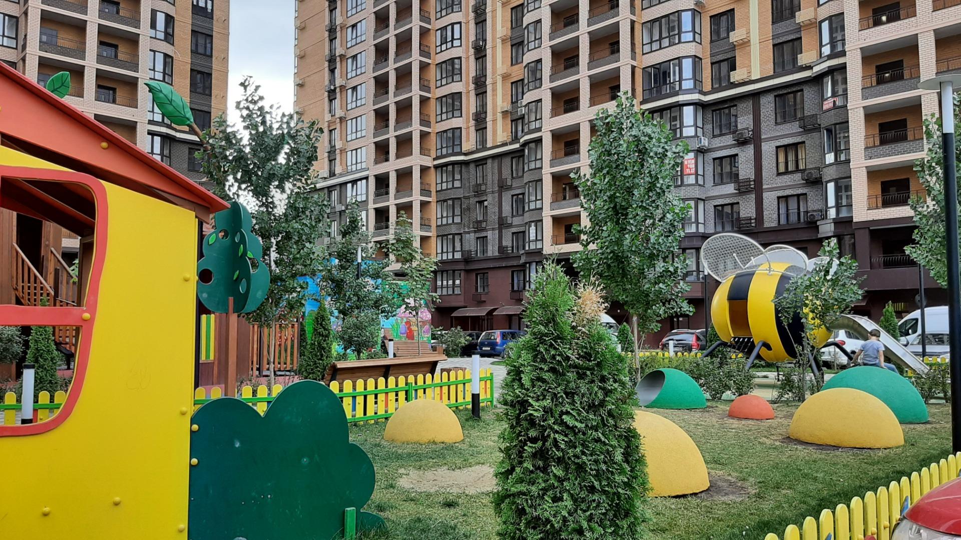 Во дворе детский сад,строится школа,зеленые прогулочные аллеи с фонтаном,множество магазинов,Гипермаркет Магнит,Леруа Мерлен,Лента.,5 минут езды ТРЦ Красная Площадь.