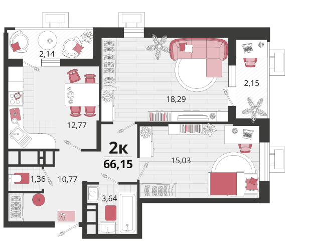 | Комнат в квартире | 2 |