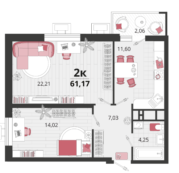 Продается 2-х комн. новостройка, 65 кв.м., 13/16 эт