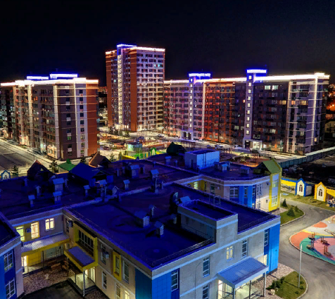 В районе разбит большой Парк на 9Га, построен и сдан в эксплуатацию детский сад., строится школа,православный храм, поликлиника, оздоровительный комплекс с бассейном.Проект город в городе