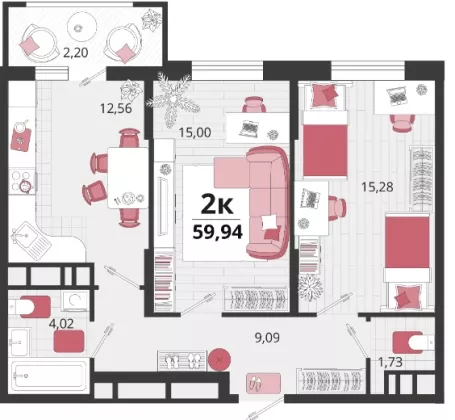 Продается 2-х комн. новостройка, 60 кв.м., 17/18 эт