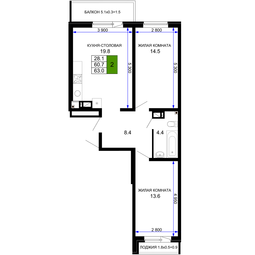 Продается 3-х комн. новостройка, 64 кв.м., 5/16 эт