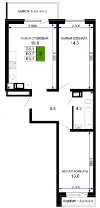 Просторная квартира,площадью 66м2,в предчистовой отделке для большой семьи,с большой кухней-гостинной 21м2