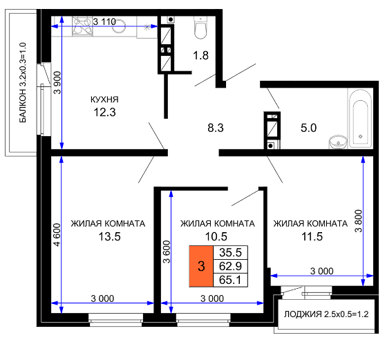 | Площадь, кв.м. | 65 |