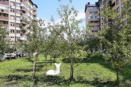 На территории разбит яблоневый сад,2 теннисных корта,наземный паркинг,современные детские площадки,закрытая площадка для выгула собак.
