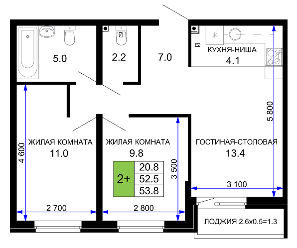 Просторная квартира,площадью 65м2, с ремонтом от застройщика под ключ для большой семьи.