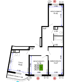 Квартира для большой и дружной семьи,площадь 75м2,кухня 19м2,планировка на 2 стороны с великолевным видом на р.Кубань и город.