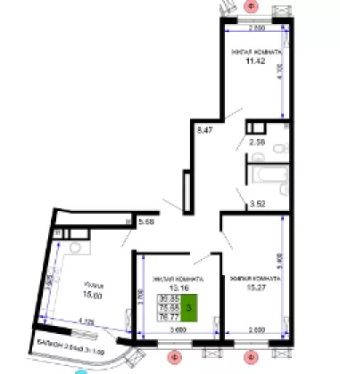 Продается 3-х комн. новостройка, 75 кв.м., 21/24 эт