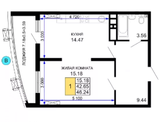 Продается однокомнатная новостройка, 47 кв.м., 13/22 эт