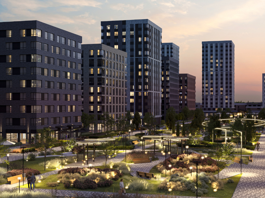 В комплексе 5 аллей и бульваров,фитнес-клубы,детские сады и школы.