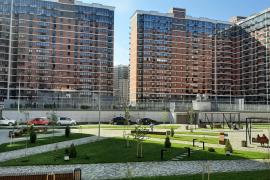 Придомовая территория со стилобатом,где первый этаж-это паркинг,второй- зона отдыха,детские площадки.