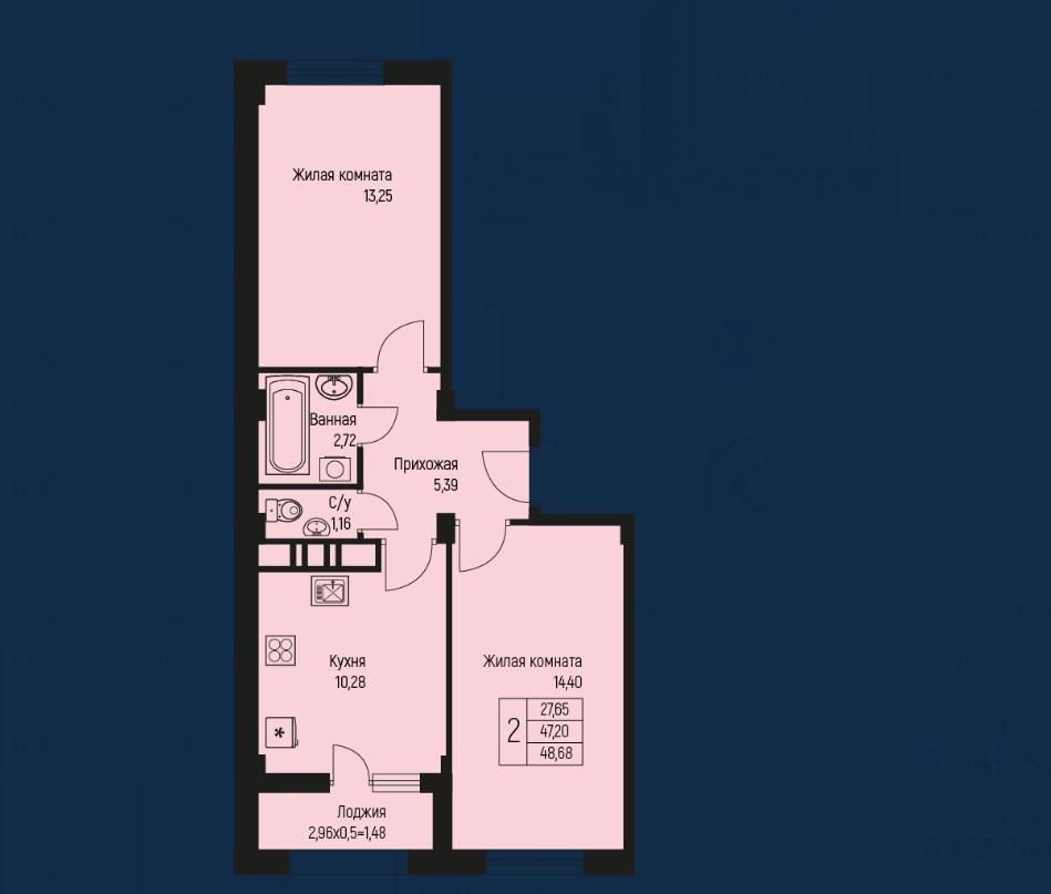 Продается 2-х комн. новостройка, 49 кв.м., 8/10 эт